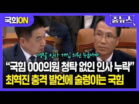 [국회ON] "국힘 OOO의원 청탁 없인 경찰 인사 누락?" 최혁진 충격 발언에 국힘 '시끌시끌' #국민의힘…