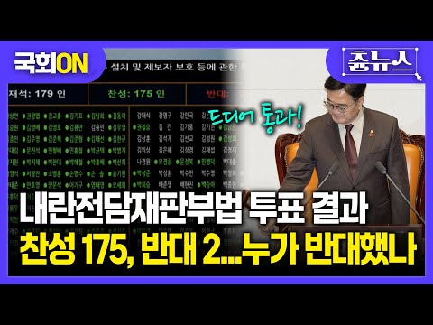[국회ON] 내란전담재판부법 통과 순간!...'찬성 175명, 반대 2명' 누가 반대했나 봤더니 #국회 #본회의 #내란재판 #내란재판부 #우원식 #국민의힘 #장동혁 > 시사 뉴스
